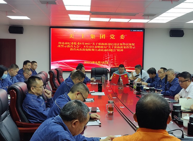 2023.05.16集團黨委召開警示教育專題學習會2023年5月15日上午,美豐集團黨委組織中層副職以上管理部干部、管錢管物部門全體人員召開了“張海波案件”警示教育專題學習會,會議由黨委書記、董事長任國建主持學習。會議首先由黨群工作部組織學習習近平總書記《了解更多