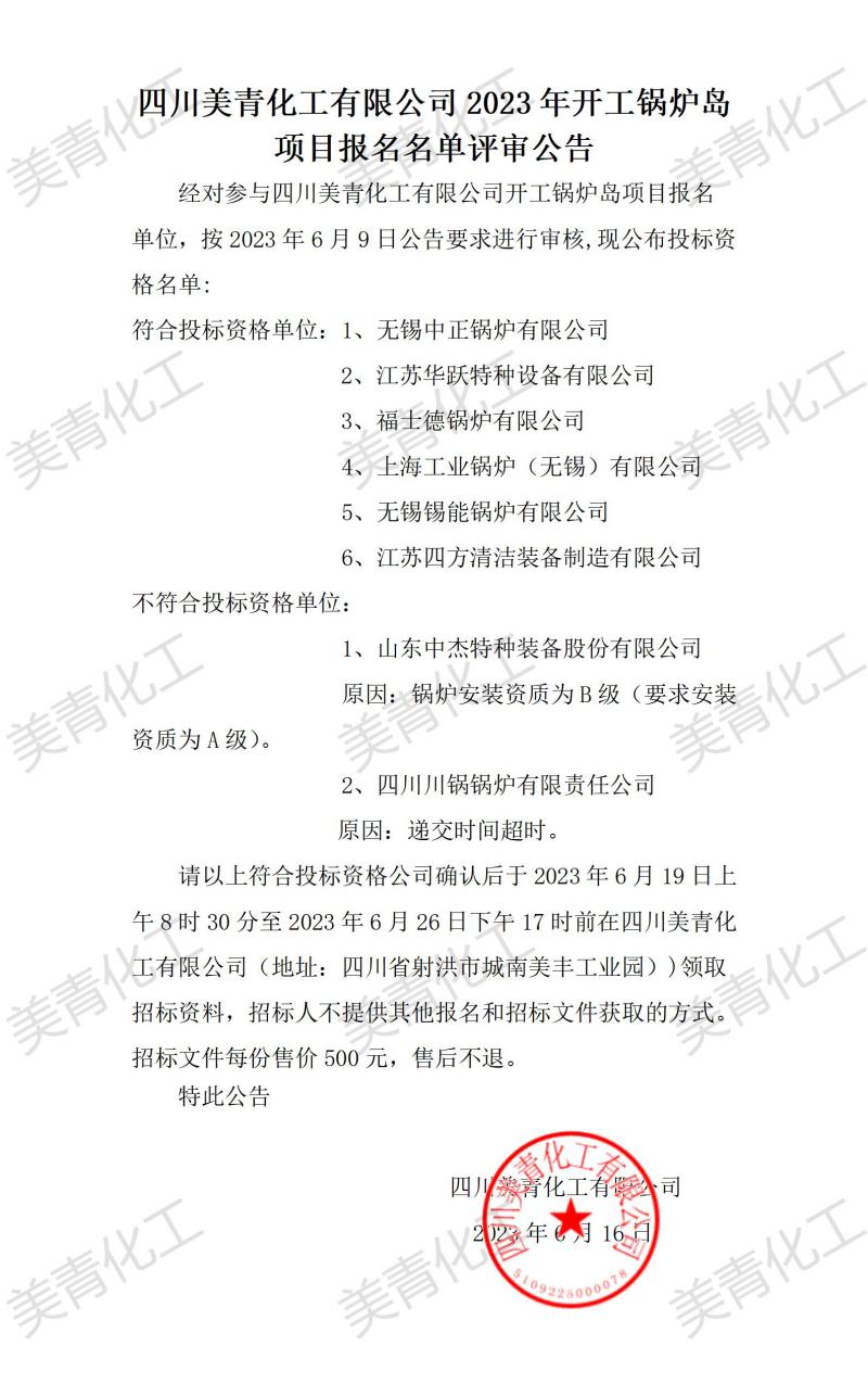 開(kāi)工鍋爐島項(xiàng)目報(bào)名名單評(píng)審公告