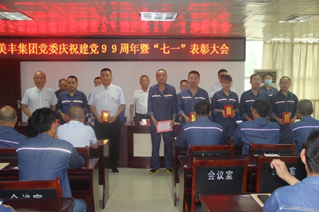 2020年6月29日下午,美豐集團(tuán)黨委在美青化工生產(chǎn)大樓二會議室召開慶祝建黨99周年暨“七一”表彰大會。公司黨委書記、總經(jīng)理任國建,黨委委員、副總經(jīng)理宋根、謝安、何琳,黨委委員、總經(jīng)理助理張鵬,黨委委員、總會計師李旭東出席了會議。會議由張鵬主持。
