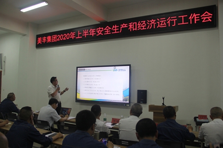 2020年8月3日,美豐集團在生產大樓電教中心召開2020年上半年安全生產和經濟運行工作會。公司黨委書記、總經理任國建,黨委委員、副總經理宋根、謝安、何琳,黨委委員、總會計師李旭東,黨委委員、總經理助理張鵬出席了會議。會議由張鵬主持。